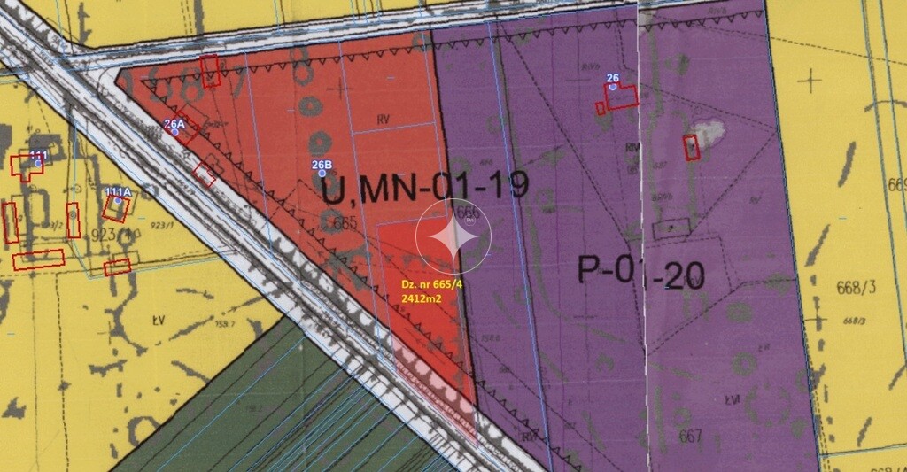 2412 m² (nr ewidencyjny 665/6), położoną