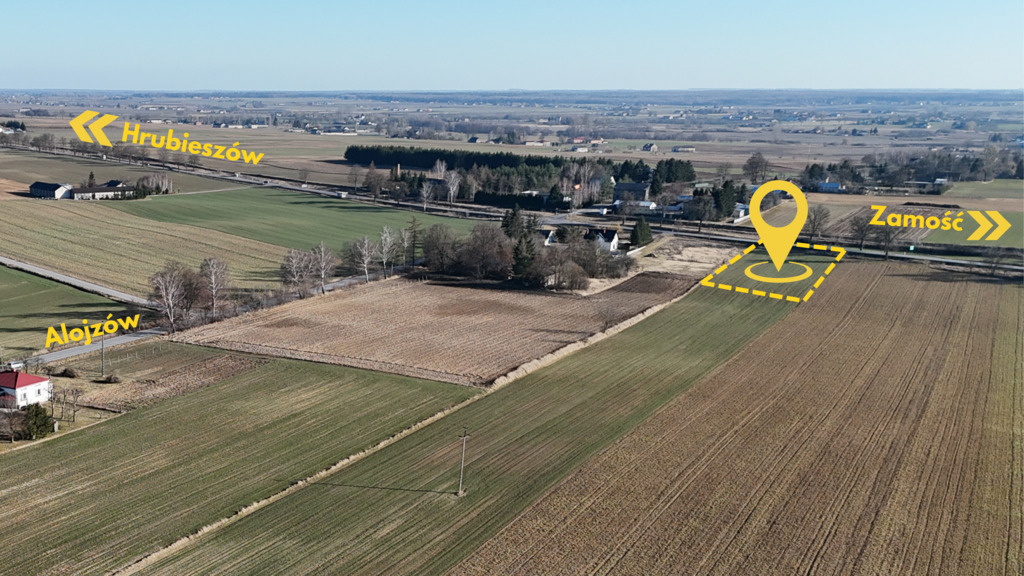 Działka położona na granicy Alojzowa i Werbkowic przy trasie łączącej Zamość z przejściem granicznym w Zosinie (Ukraina).