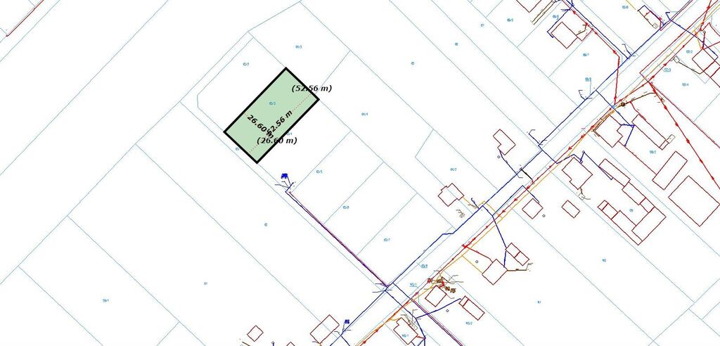 Kształt działki - prostokąt o wymiarach : 52,56 m x 26,60 m.