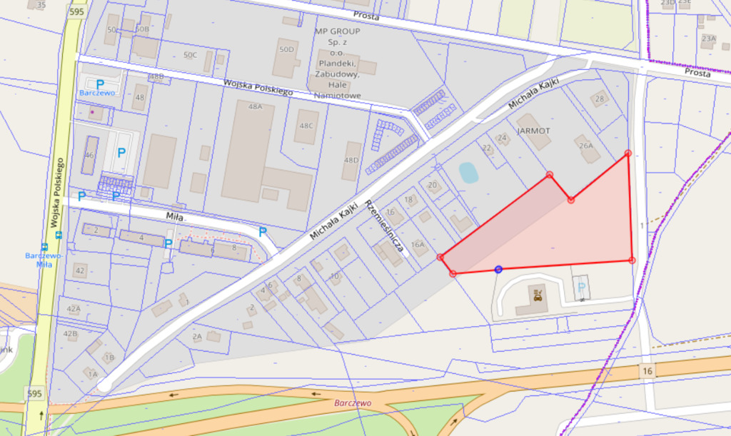 Oferujemy do sprzedaży atrakcyjną działkę o powierzchni ok. 1 ha, położoną w Barczewie, zaledwie 2 minuty od zjazdu z drogi krajowej nr 16. Działka zostanie wydzielona z większej nieruchomości (dz. nr 51/47, obręb Miasto Barczewo 2) i jest objęta miejscowym planem zagospodarowania, który dopuszcza zabudowę usługową oraz nieuciążliwą działalność produkcyjną.