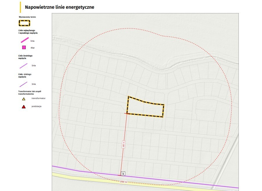 - Media w drodze: prąd – linia średniego napięcia w odległości 182m