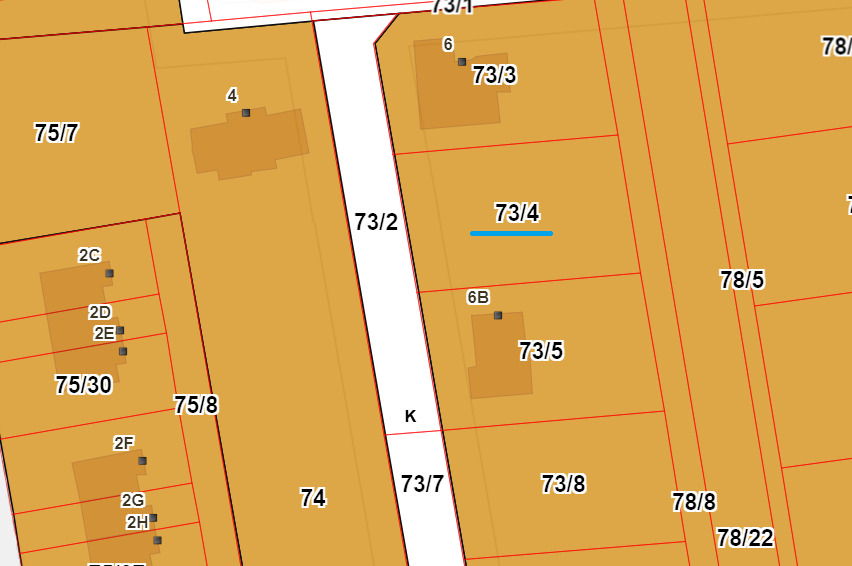 Front działki położony jest od strony zachodniej, z utwardzonej drogi wewnętrznej na zasadzie służebności.Media: prąd, gaz – bezpośrednio w drodze przed działką.