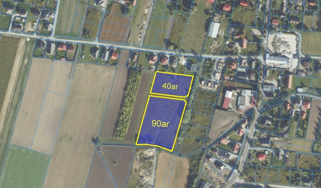 Działka w kształcie prostokąta o wymiarach ok. 80m x 160m
