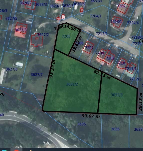 Nieruchomość składa się z trzech działek ewidencyjnych (nr. 7205, 3632/3, 3631/2), tworzących spójną całość.