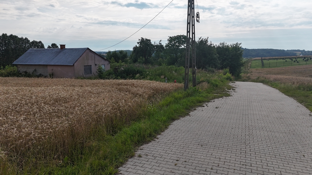 Działka płaska z lekkim nachyleniem i dostępem do drogi. Otoczona łąkami, polami oraz zabudowaniami gospodarczymi z domami jednorodzinnymi .Spokojna i cicha okolica, idealna dla osób ceniących bliskość natury a tym samym doskonałą komunikacje z miastem oddalonym tylko 12 kilometrów.