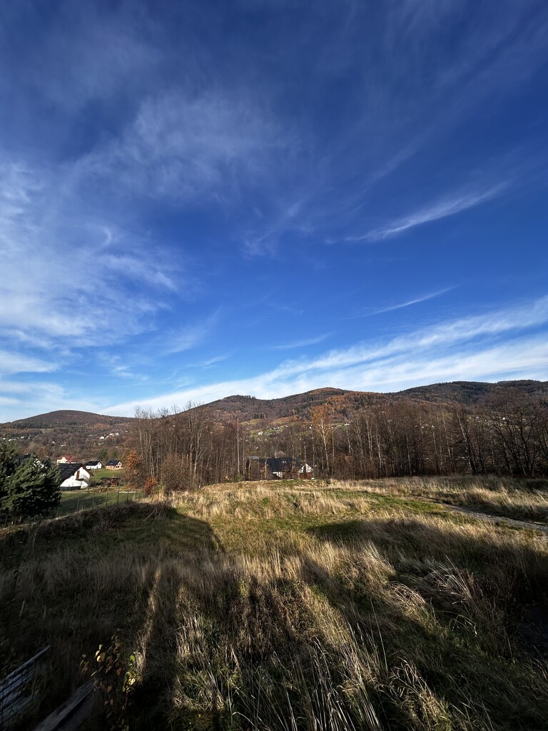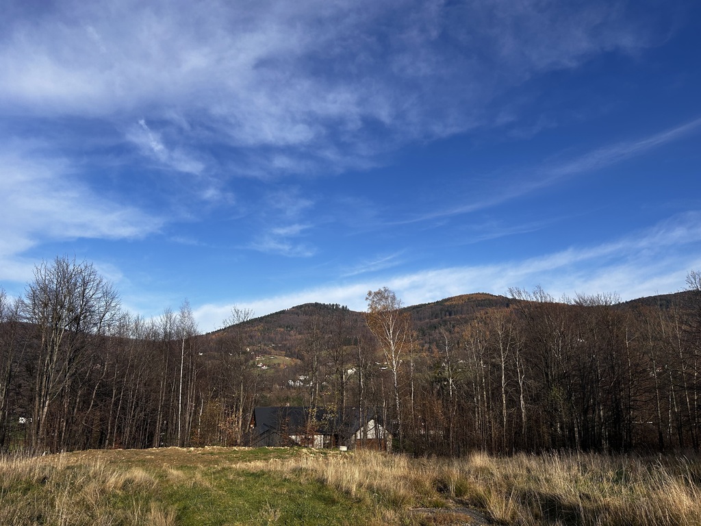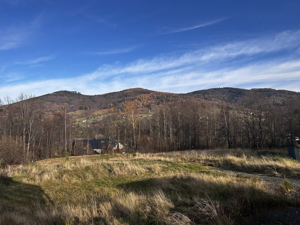 - panoramiczne widoki na zielone wzgórza i beskidzkie lasy - idealne pod duże przeszklenia i nowoczesną, luksusową architekturę.