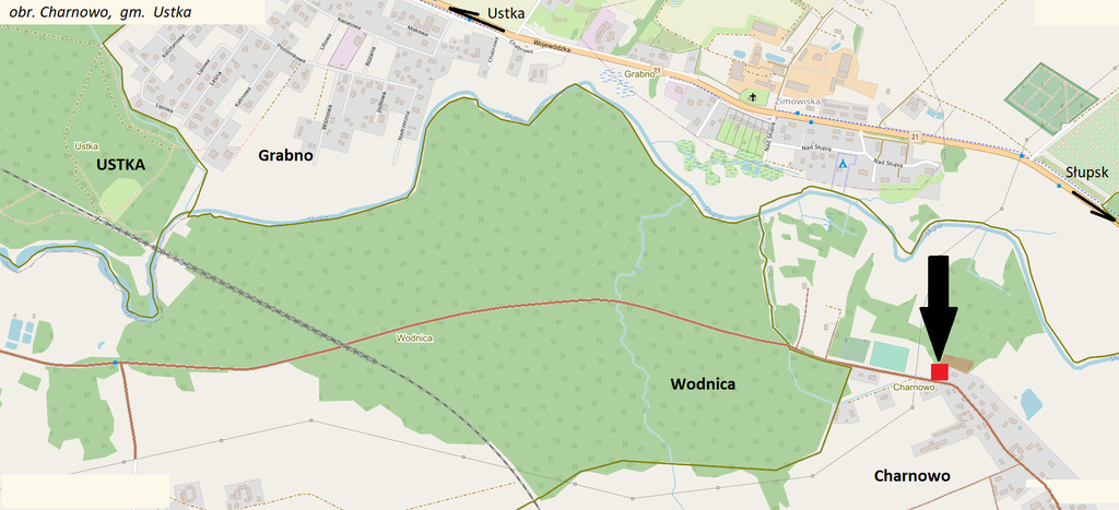 Charnowo, wieś położona na południe od Ustki, zaledwie 3 km od miasta i około 6 km od plaży. Przez wieś przepływa rzeka Słupia, zabudowa mieszkaniowa położona jest wzdłuż zachodniego brzegu koryta rzeki. Charakterystyczna jest tutaj zabudowa szachulcowo - murowana. Miejsce bardzo klimatyczne, cisza i spokój, idealne na piesze i rowerowe wycieczki.