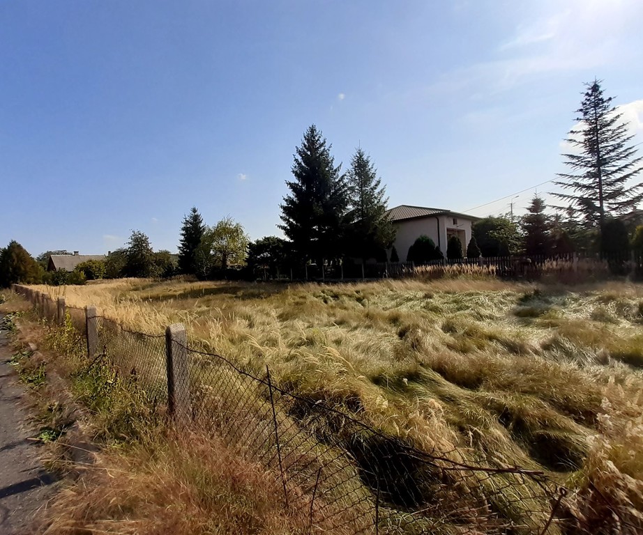 Ogrodzona działka o powierzchni 3347 m2, położona w otoczeniu domów jednorodzinnych z dostępem z trzech stron do drogi asfaltowej.