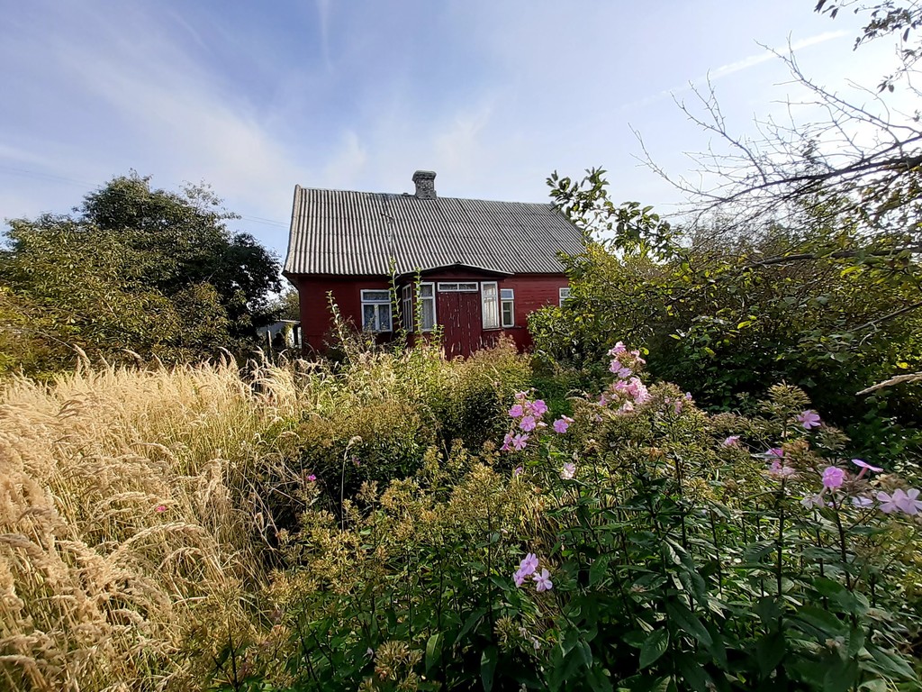 Na działce znajduje się stary drewniany dom do remontu.