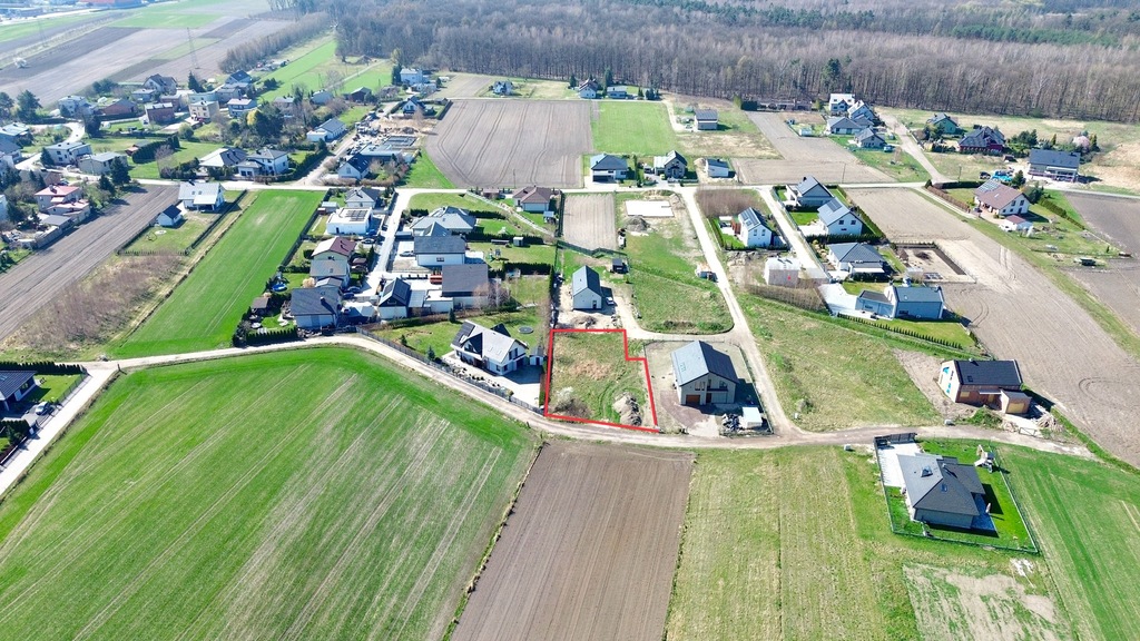 • Idealne proporcje – działka jest ustawna, co pozwala na dowolną aranżację: wymarzony dom, ogród, taras, garaż czy altanę – wszystko się zmieści!