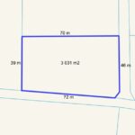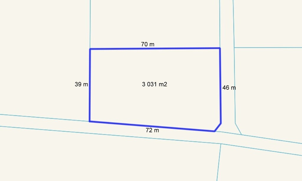 Kształt działki zbliżony do prostokąta, o pow. 3 034 m2, długości 72 m i szerokości 40m.