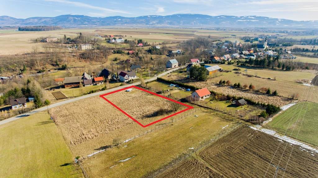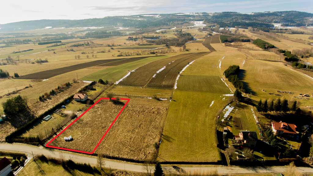 Działka budowlana pod zabudowę jednorodzinną wolnostojącą lub bliźniaczą. W malowniczej scenerii o powierzchni