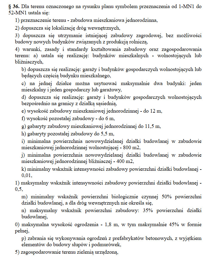 - maksymalną powierzchnię zabudowy: 35%,