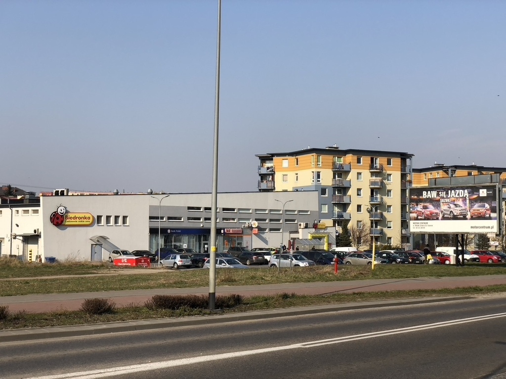 Pełna infrastruktura handlowo-usługowa, Biedronka, Lidl, czerwona torebka, mcdonald's, stacja shell oraz orlen, liczne tereny zielone.