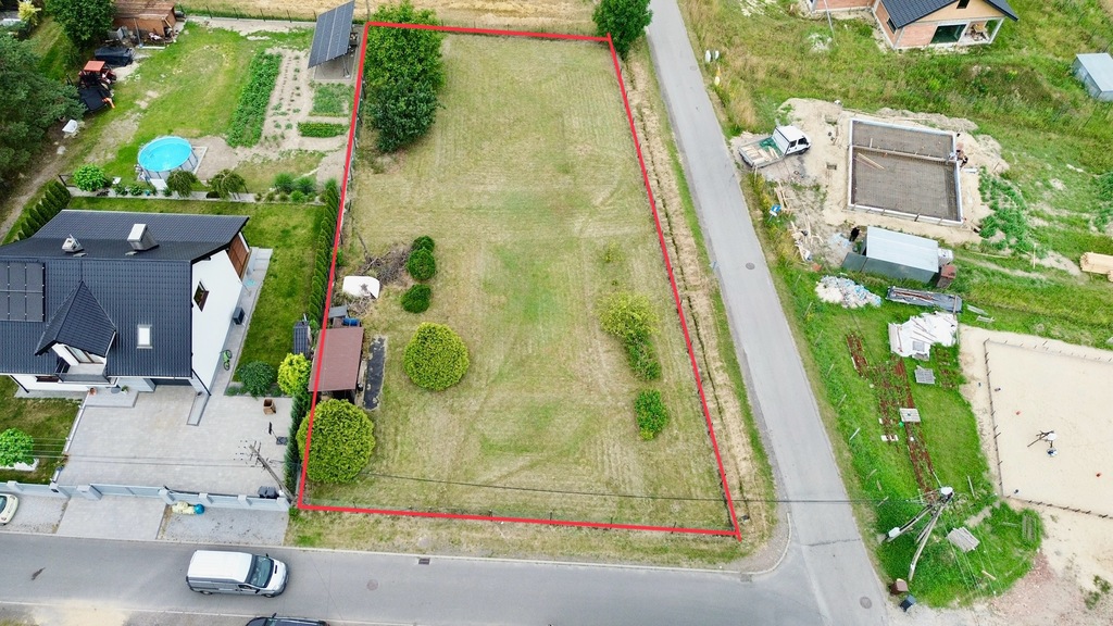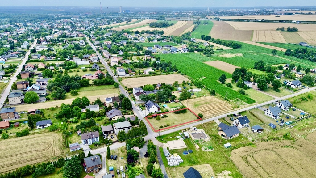 Działka znajduje się w cichej, zielonej okolicy, w otoczeniu nowoczesnych domów jednorodzinnych. Połączenie spokoju i bliskości kluczowych punktów sprawia, że to doskonałe miejsce do życia.