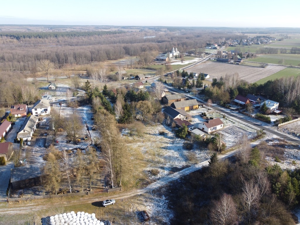 Na co drugim słupie zamieszkałe gniazdo bocianie, a oferowana nieruchomość świetnie sprawdzi się pod budowę domu letniskowego lub całorocznego.
