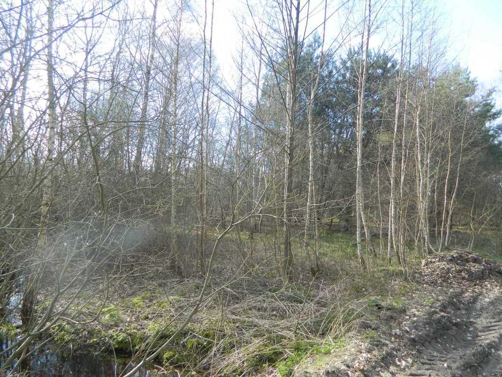 Działka zadrzewiona młodymi drzewami, co pozwala na umiejscowienie nowego domu pośród przyrody.