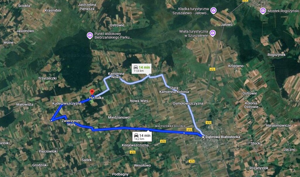 - Bliskość Dąbrowy Białostockiej (ok. 6 km) – zapewnia szybki dostęp do pełnej infrastruktury: sklepów, szkół, przychodni zdrowia, urzędów i punktów usługowych.