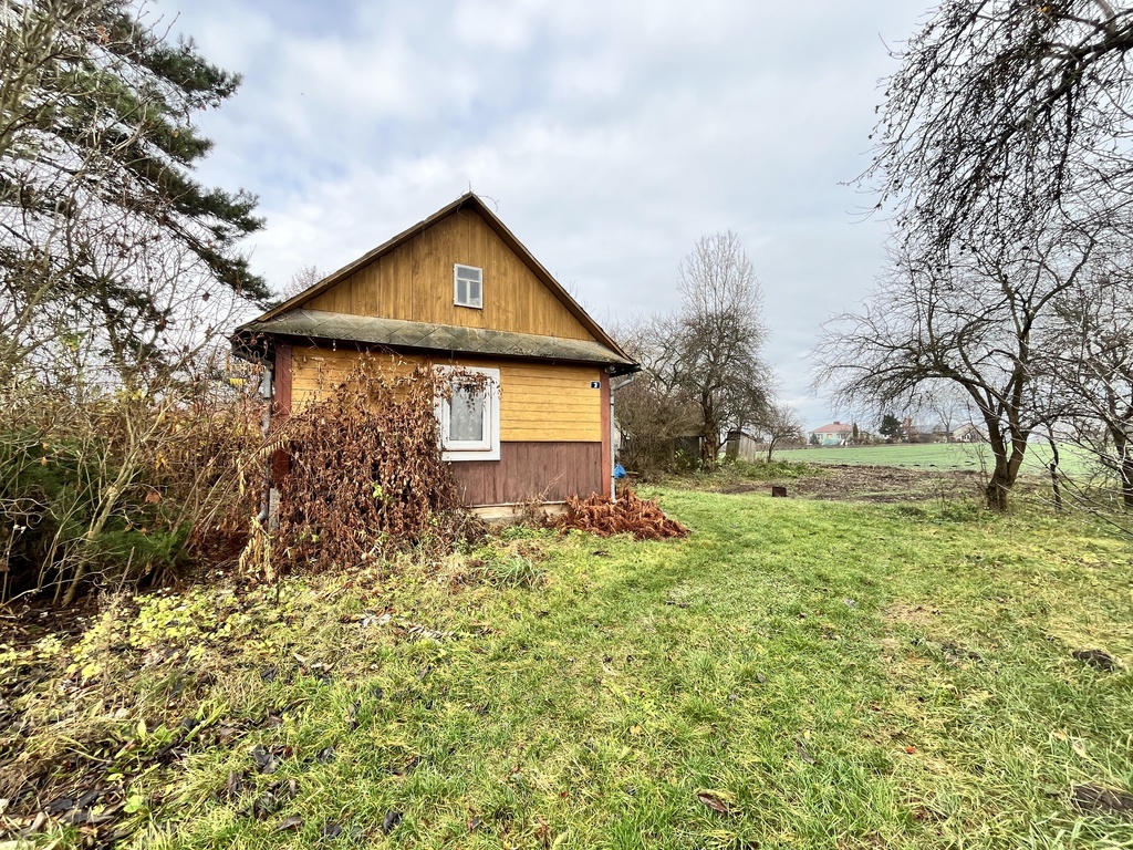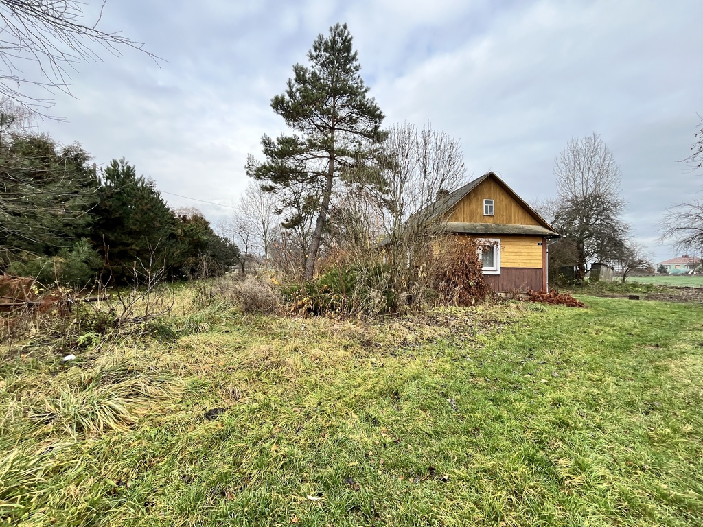 Dom o konstrukcji drewnianej ma około 50m2 powierzchni.  W budynku znajdują się dwa pokoje, kuchnia  i łazienka. Budynek od kilku lat stoi nieużywany, jednak na czas budowy/adaptacji działki swobodnie może posłużyć jako tymczasowe schronienie lub miejsce magazynowania.