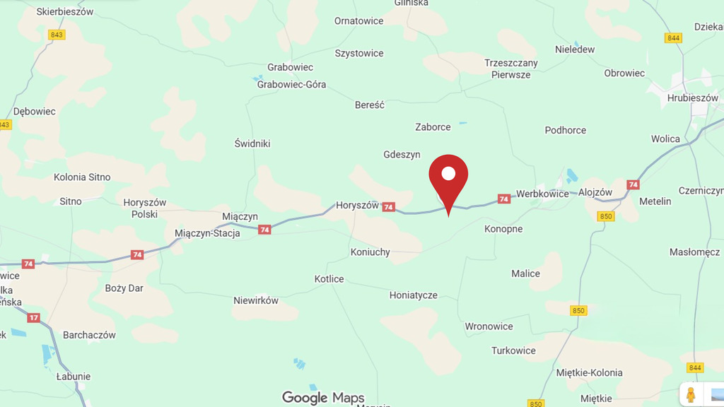 * Działka leży przy Drodze Krajowej nr 74,  32 km na wschód od Zamościa i  18 km na zachód  od Hrubieszowa.