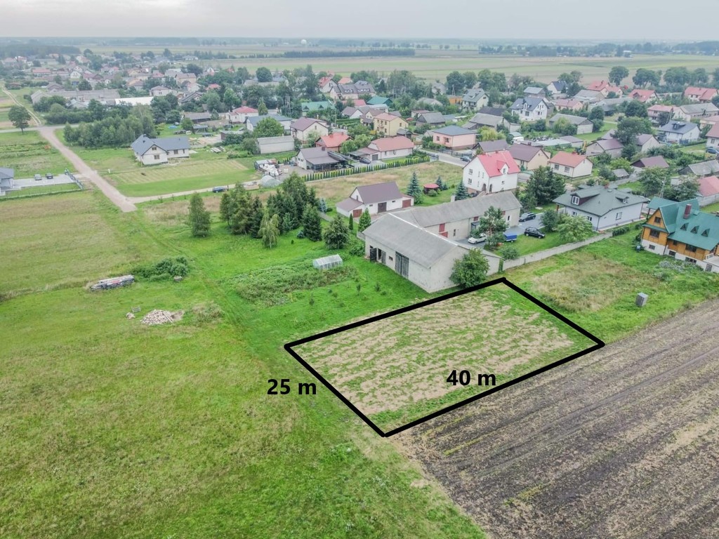 Działka o numerze 25/1 po podziale działki 25 znajdująca się w miejscowości Hrud, powiat bialski, 5km na północ od Białej Podlaskiej.
