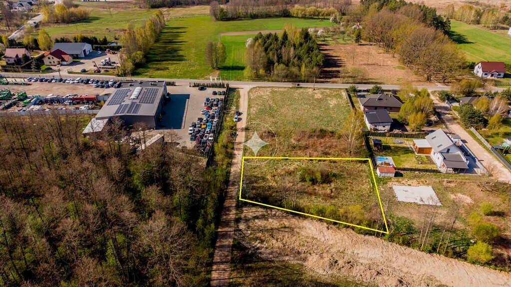 Działka posiada dostęp do drogi gminnej, a w bezpośrednim sąsiedztwie znajdują się domy jednorodzinne oraz niezabudowane tereny, co daje poczucie przestrzeni. Uzbrojenie obejmuje skrzynkę elektryczną przy działce, natomiast zgodnie z projektem przewidziano studnię jako źródło wody oraz zbiornik szczelny na ścieki.