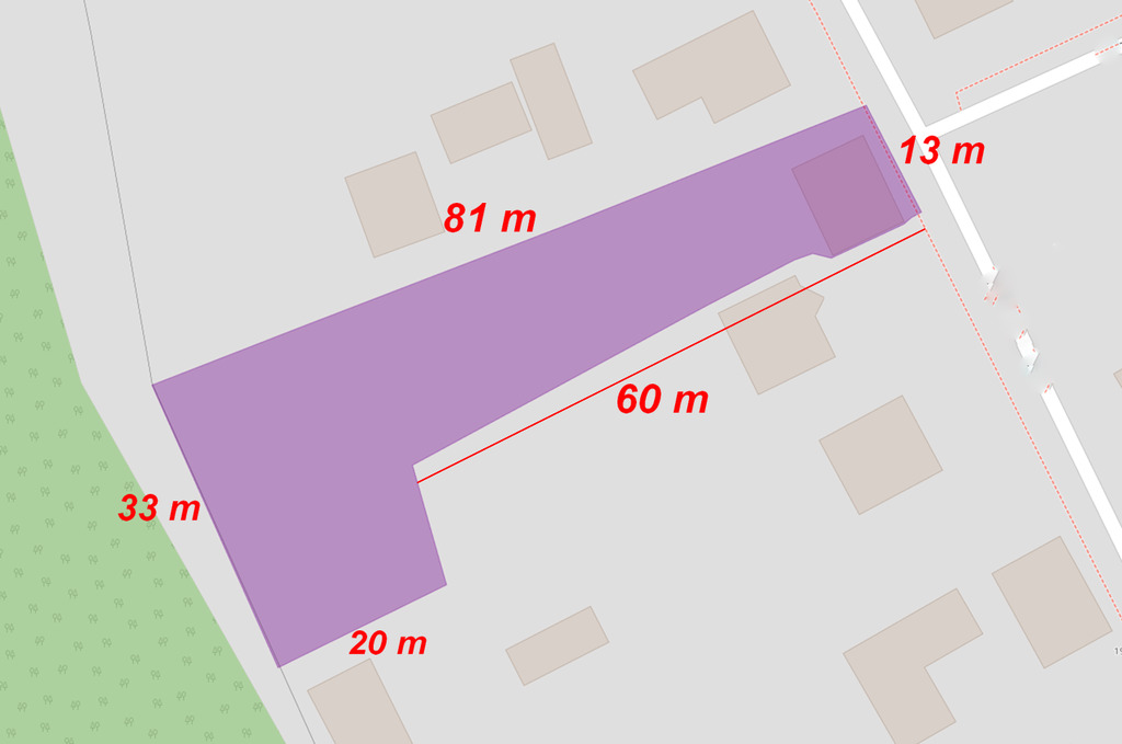 Działka ma powierzchnię 1557 m2, obok zabudowa jednorodzinna