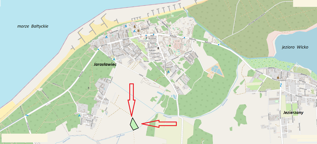 odległość od centrum miejscowości Jarosławiec ok.1,5 km