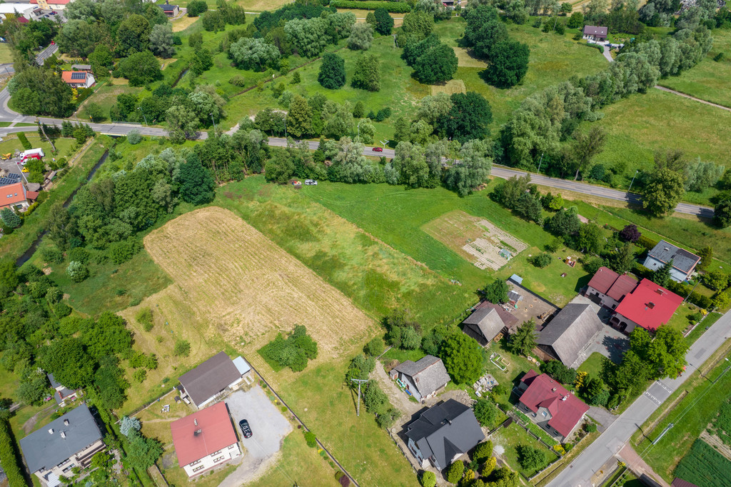 Działka płaska w kształcie prostokąta o wymiarach 25 × 108. Nieogrodzona. Luźna zabudowa jednorodzinna. Usytuowana w pierwszej linii zabudowy.