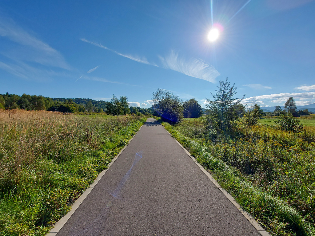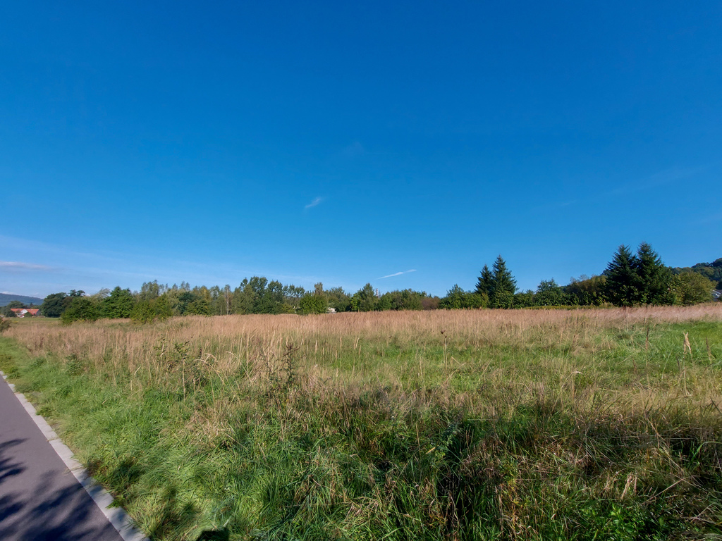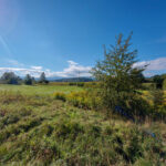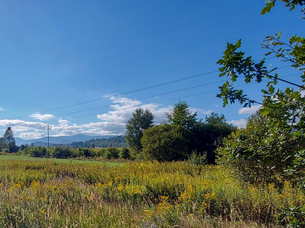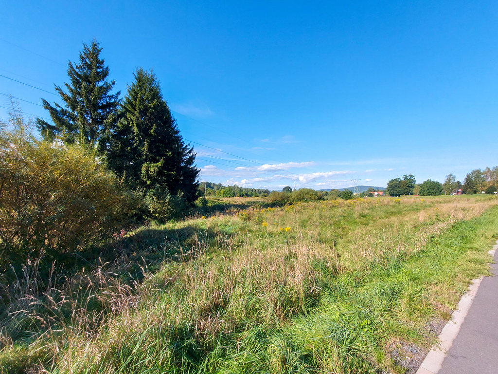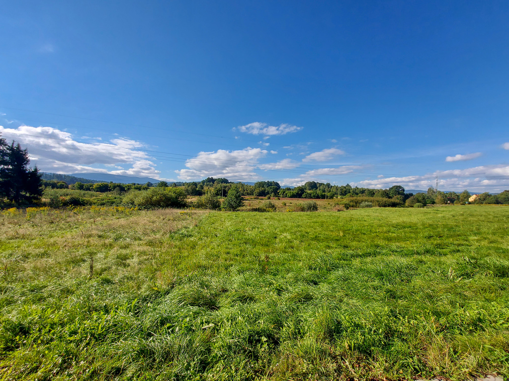 Działki są płaskie w pełni nasłonecznione w otoczeniu zieleni i drzew z widokiem na szczyty Karkonoszy.