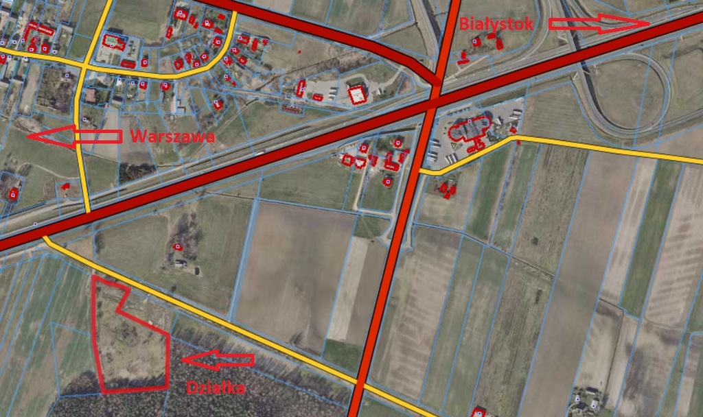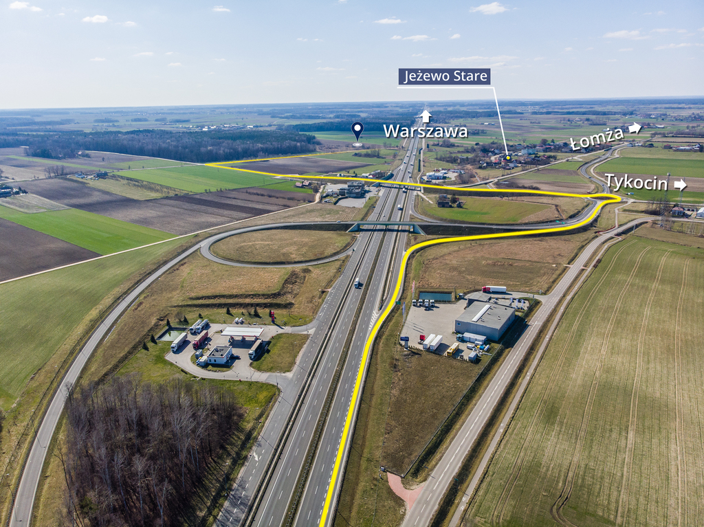 Działka znajduje się tuż obok trasy S8 na odcinku Warszawa - Białystok, co zapewnia doskonały dojazd i widoczność.