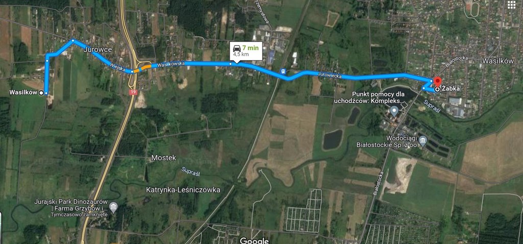 Zlokalizowana jedynie 4,5 km od granic Białegostoku, szybki dojazd drogą nr 19. Do Wasilkowa również 4,5 km wygodnym dojazdem.