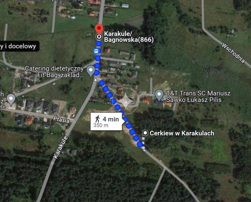 - do przystanku komunikacji miejskiej (linia nr 111) – 350 m,
