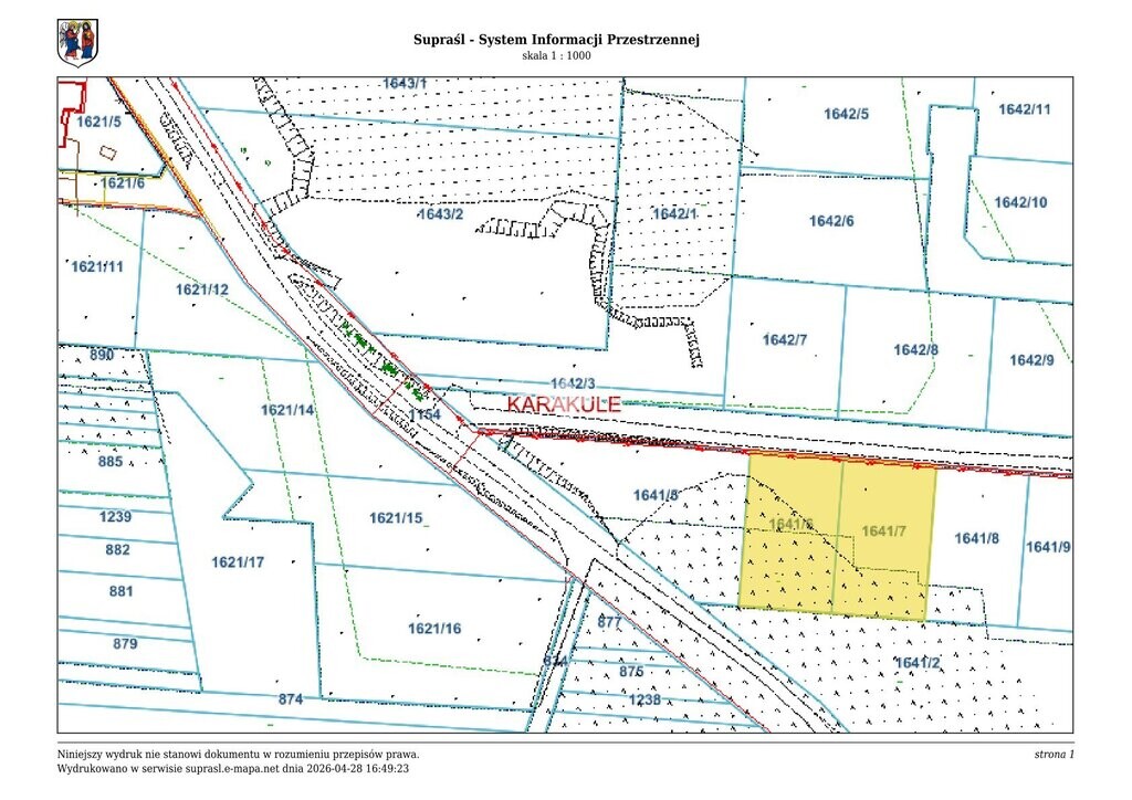 Karakule, działki budowlane 1000 m2, nr ewid. 1641/7 i 1641/8