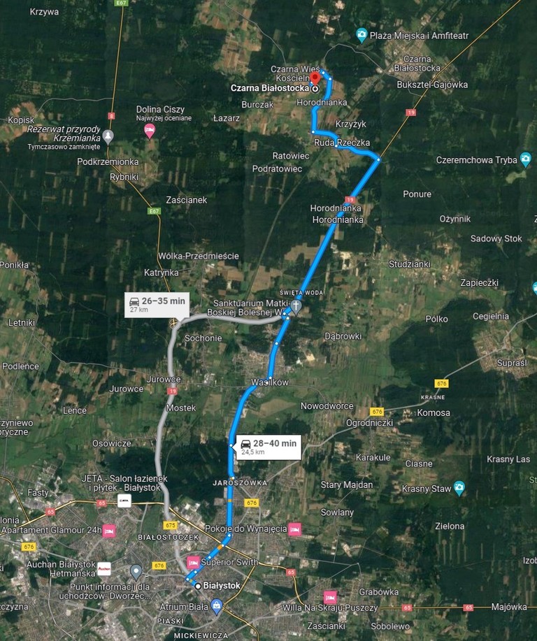 - do Białegostoku – 24 km,