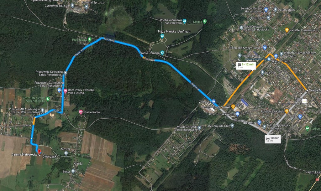- do Czarnej Białostockiej (Biedronka) – 4,9 km