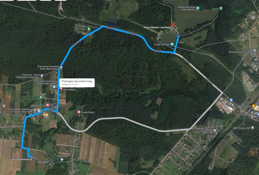 - do plaży miejskiej (Czarna Białostocka) – 3,4 km