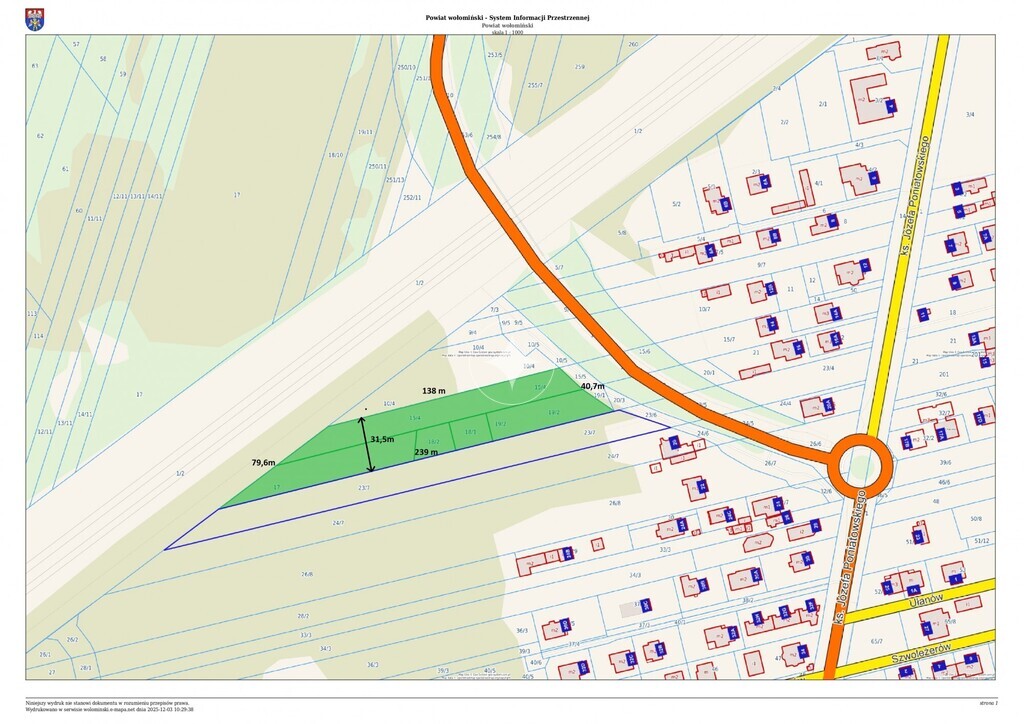 - działki po min. 500 m² po podziale,