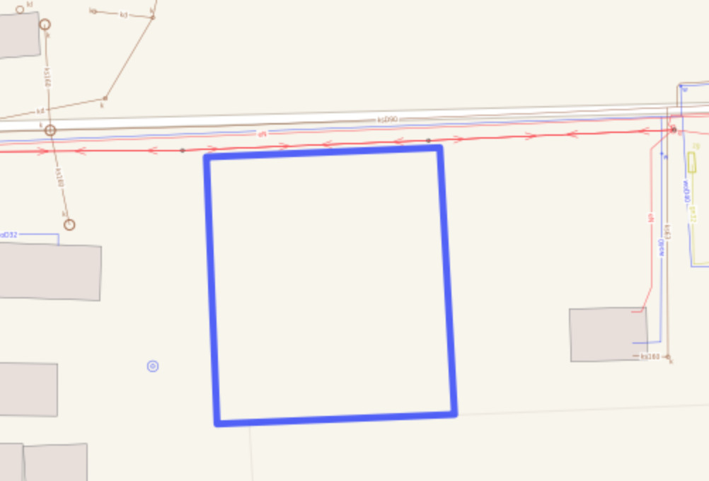 W drodze przy działce znajduje się prąd, woda i kanalizacja.