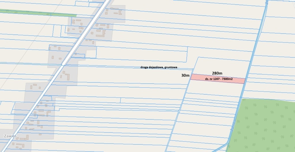 - Działka z dojazdem drogą gruntową