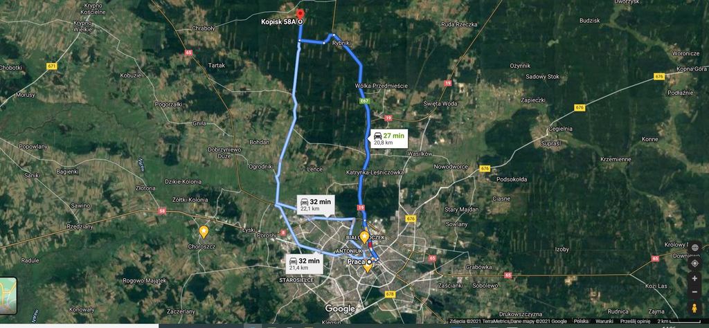 - woda w drodze dojazdowej w odległości ok. 150 m