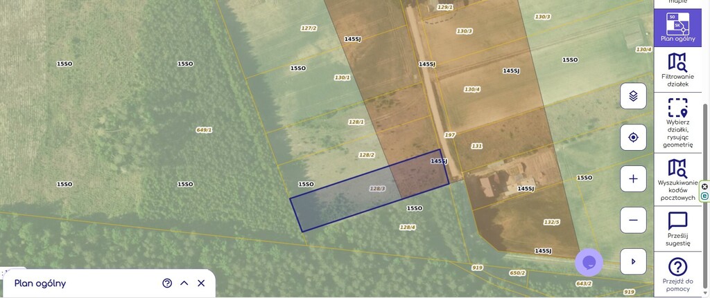 128/2 - pow. 3198 m2 możliwe warunki zabudowy. Cena 175 890 PLN