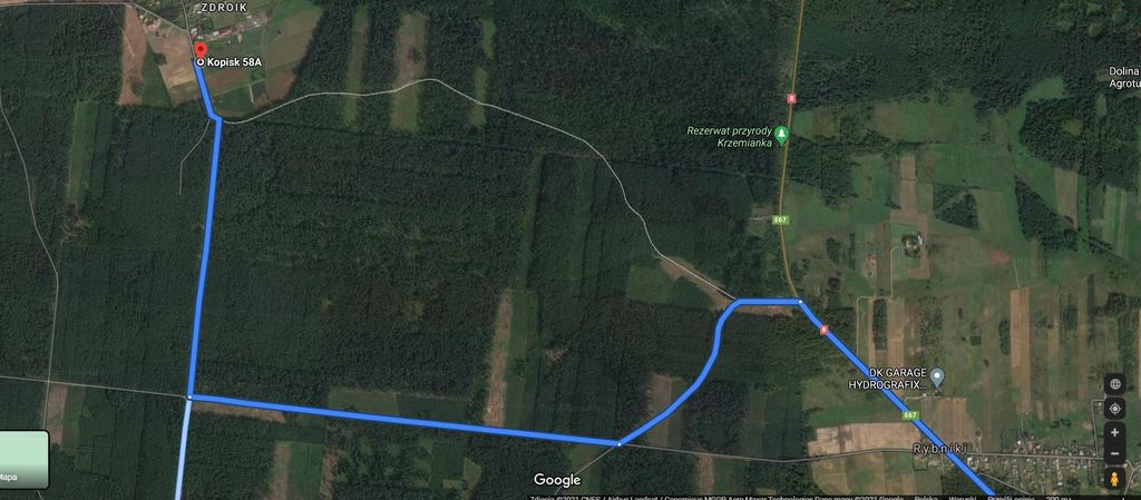 - woda w drodze dojazdowej w odległości ok. 150 m