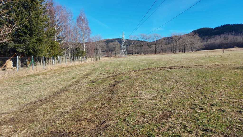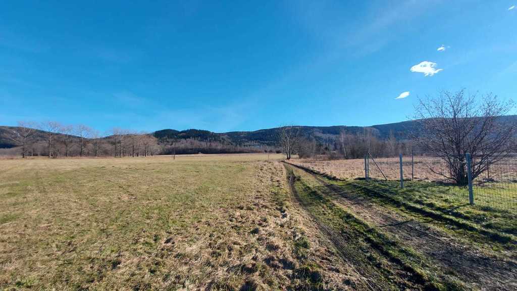 Działka położona od strony przełęczy kowarskiej z pięknymi widokami, trawiasta, pojedyncze drzewa.