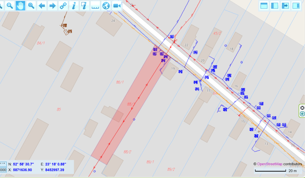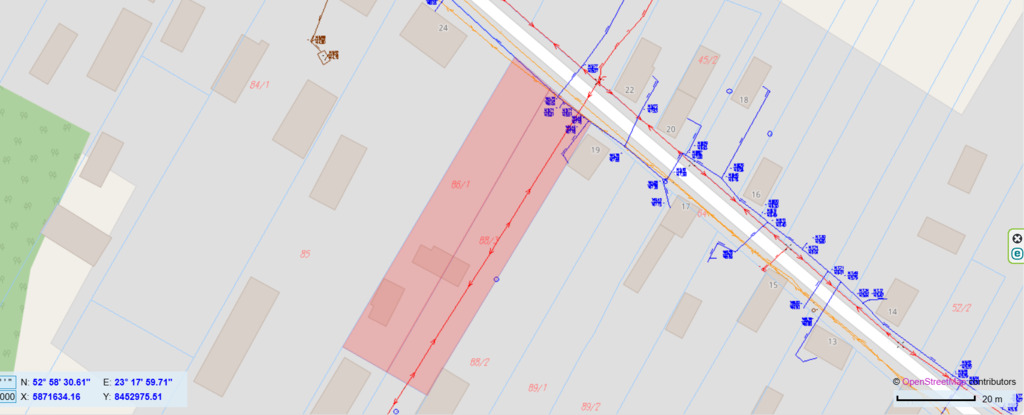Nr geodezyjny nieruchomości to 86/1 i 88/3 o łącznej powierzchni 2156 m2