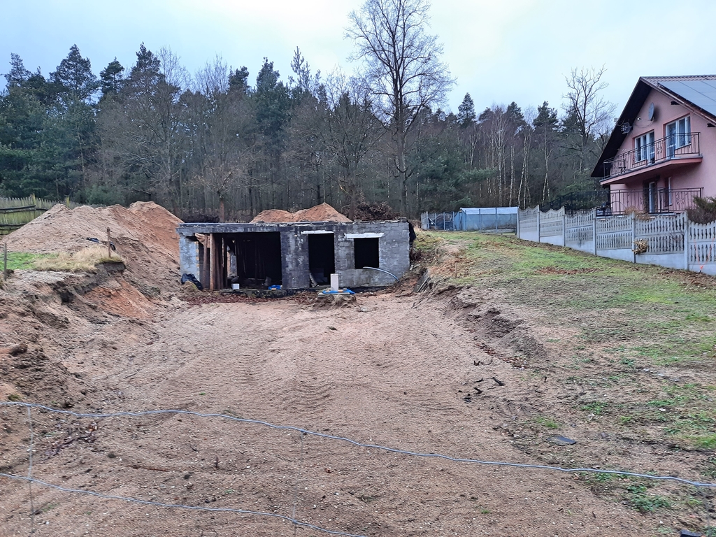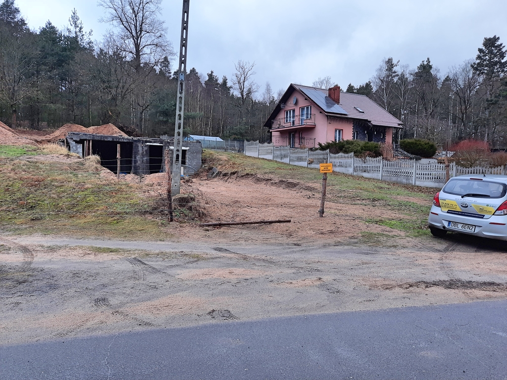 Na działce znajdują się pozostałości po rozpoczętej dawniej budowie wymagające rozbiórki.