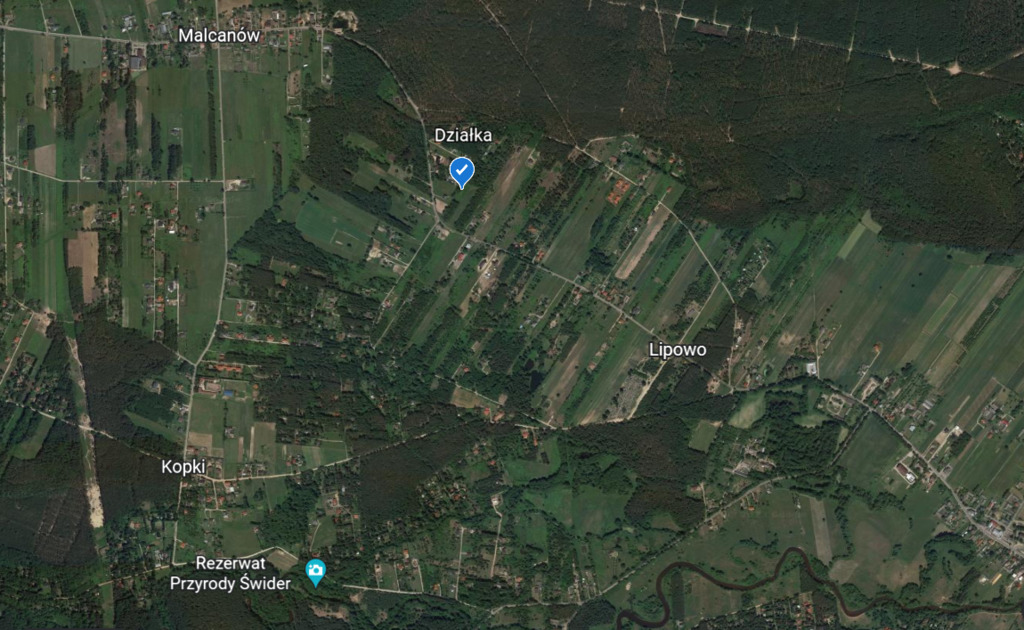 ·         Działka o powierzchni 2000  m2 w kształcie prostokąta (25,80 m x 78,62 m), położona w Lipowie w gminie Wiązowna, powiat otwocki .