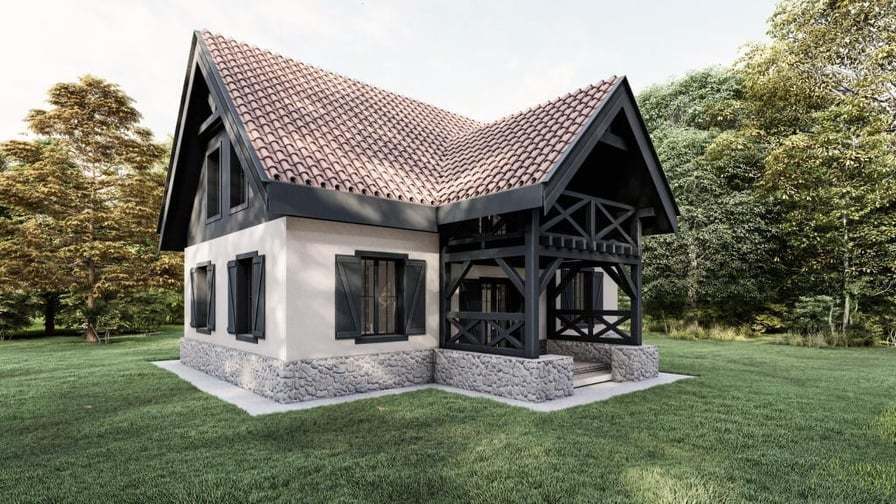 Na zdjęciach przedstawiona jest wizualizacja oraz rzuty budynku, którego projekt przygotowywany jest na indywidualne zamówienie.
