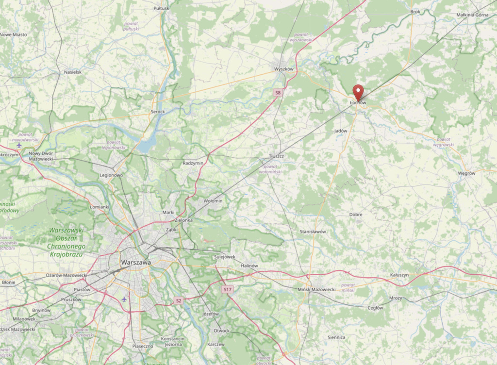 - Do Warszawy: ok. 60 km (ok. 60 minut samochodem).