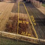Działka ma powierzchnię 56 arów, ma kształt prostokąta a teren jest ukształtowany płasko.